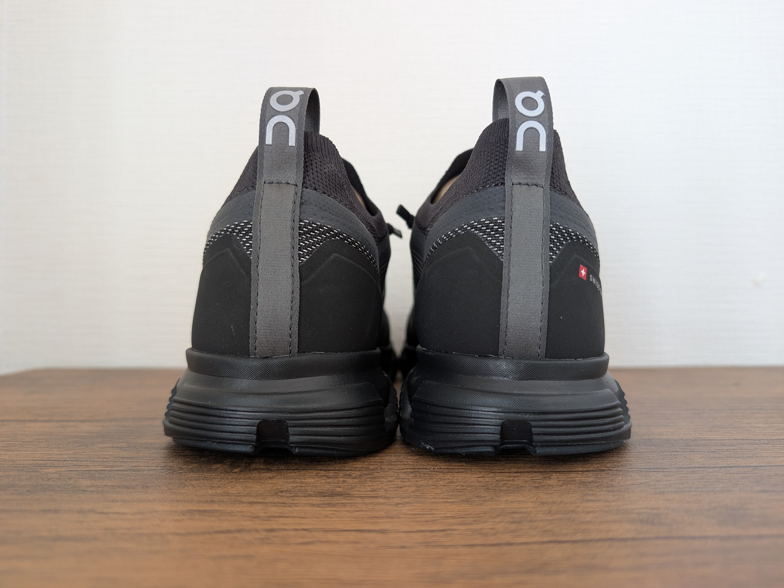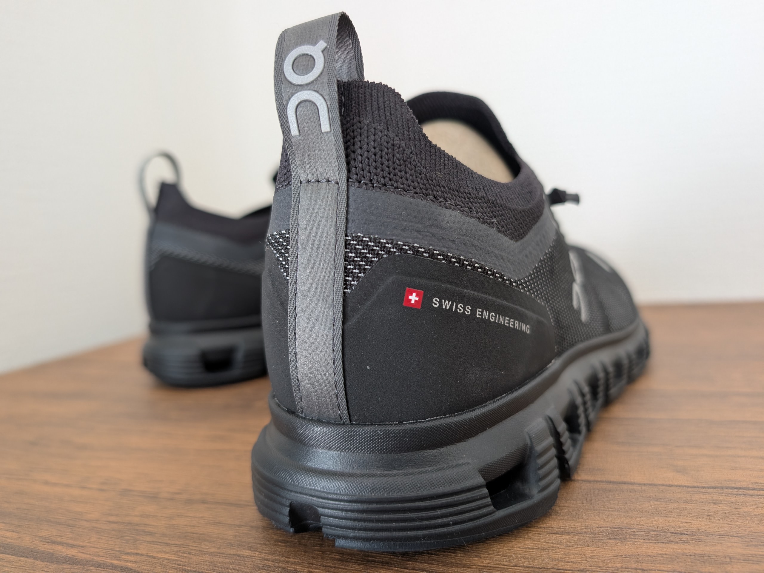 Onでお馴染みのスイスの国旗ロゴは2足とも共通で右足の踵部分にある。