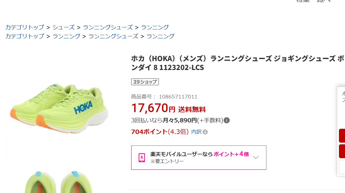 HOKAのボンダイ8は楽天で買うのもおすすめ!
