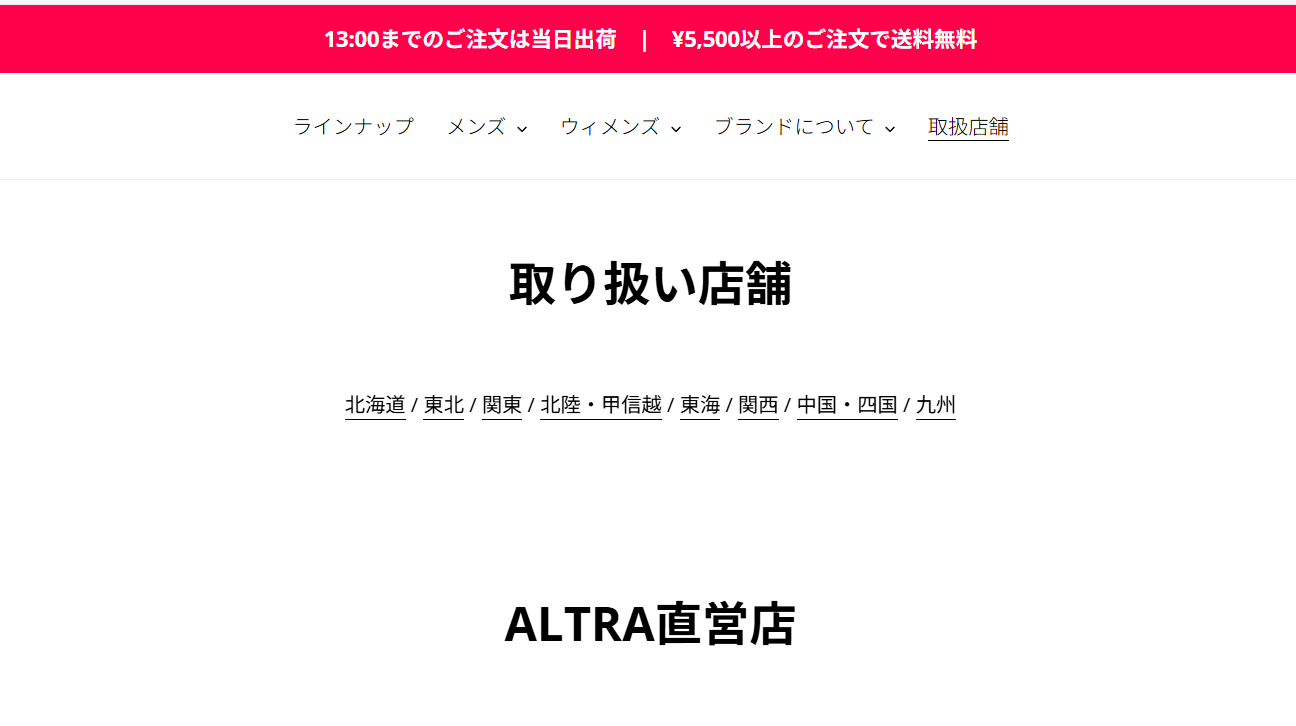 アルトラのオンラインストアにアクセスしトップページにある「取扱店舗」へ進めば簡単に見つけられる。