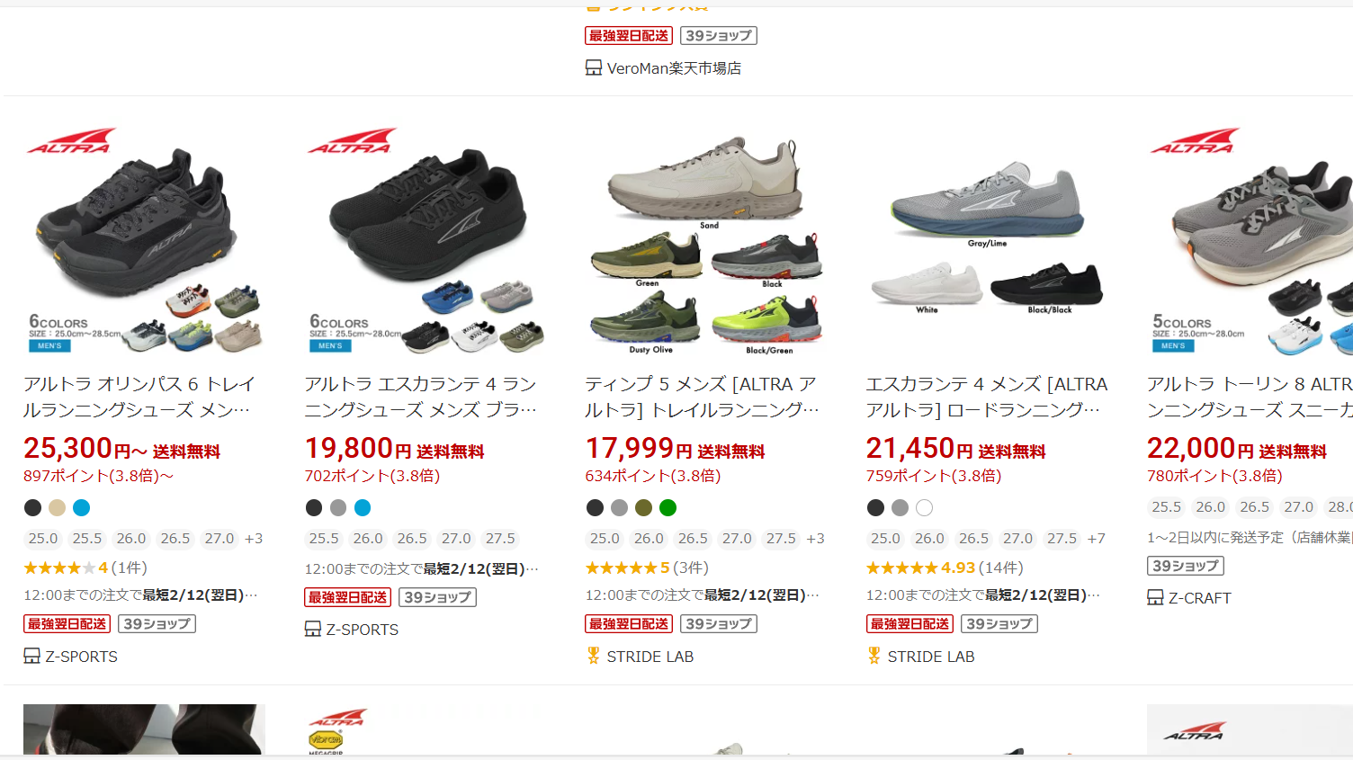 ALTRA(アルトラ)シューズはポイントが貯めやすい楽天もおすすめ!