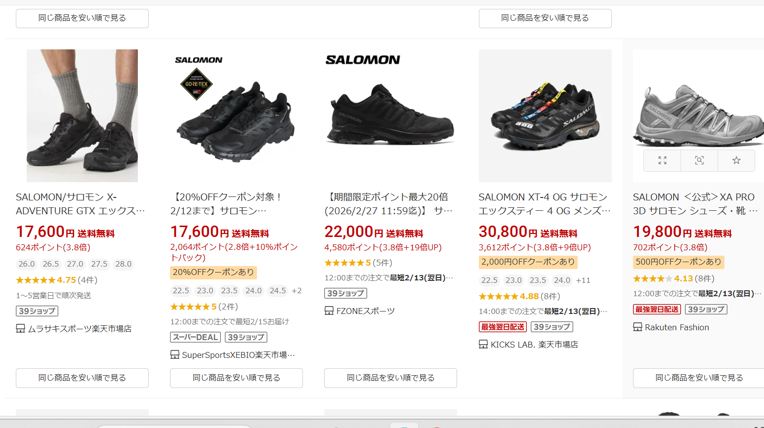 楽天市場に並ぶサロモンのシューズ