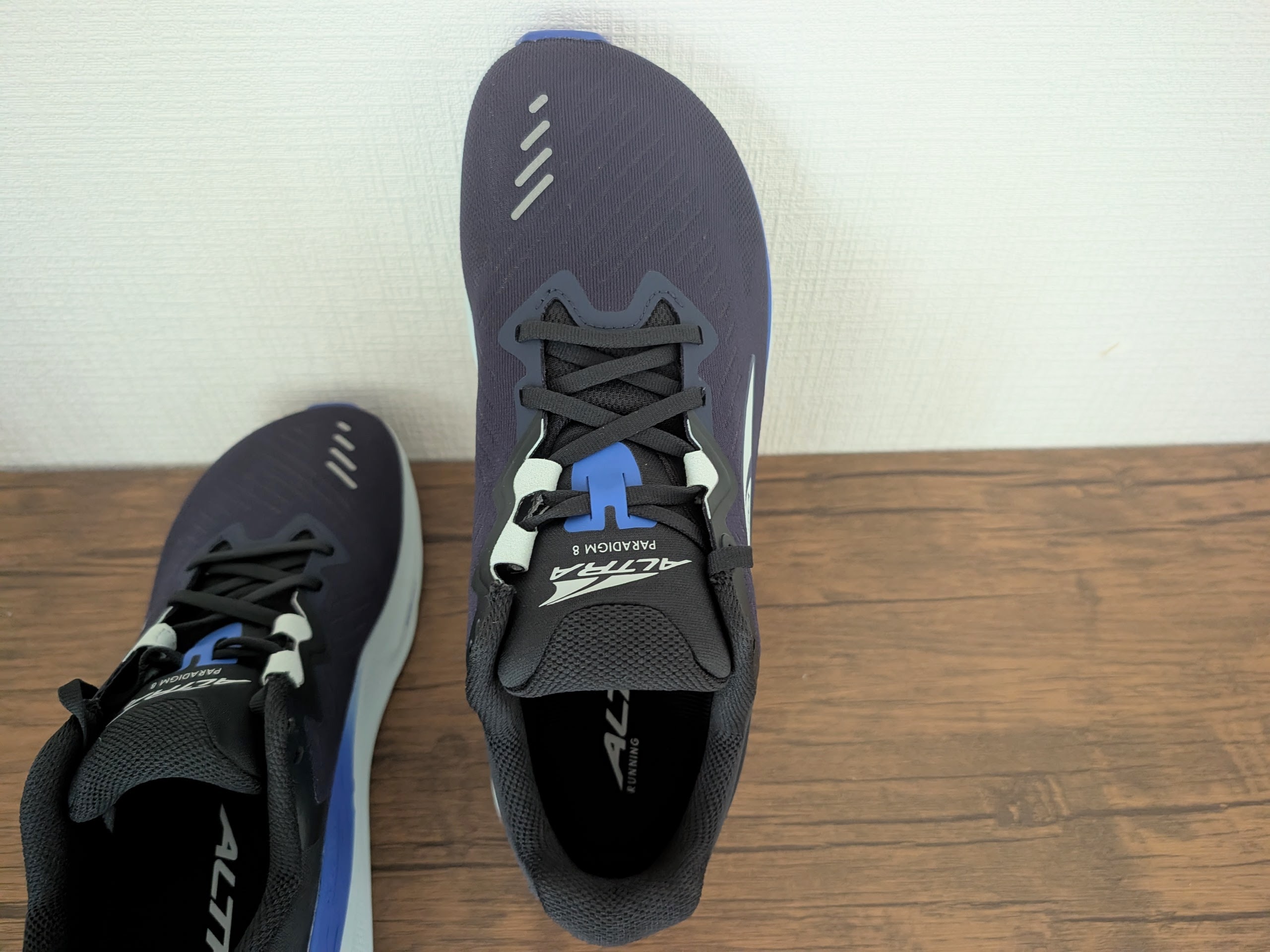 パラダイム8に限らずアルトラのシューズは全部のモデルがこの形状をしているんだ。