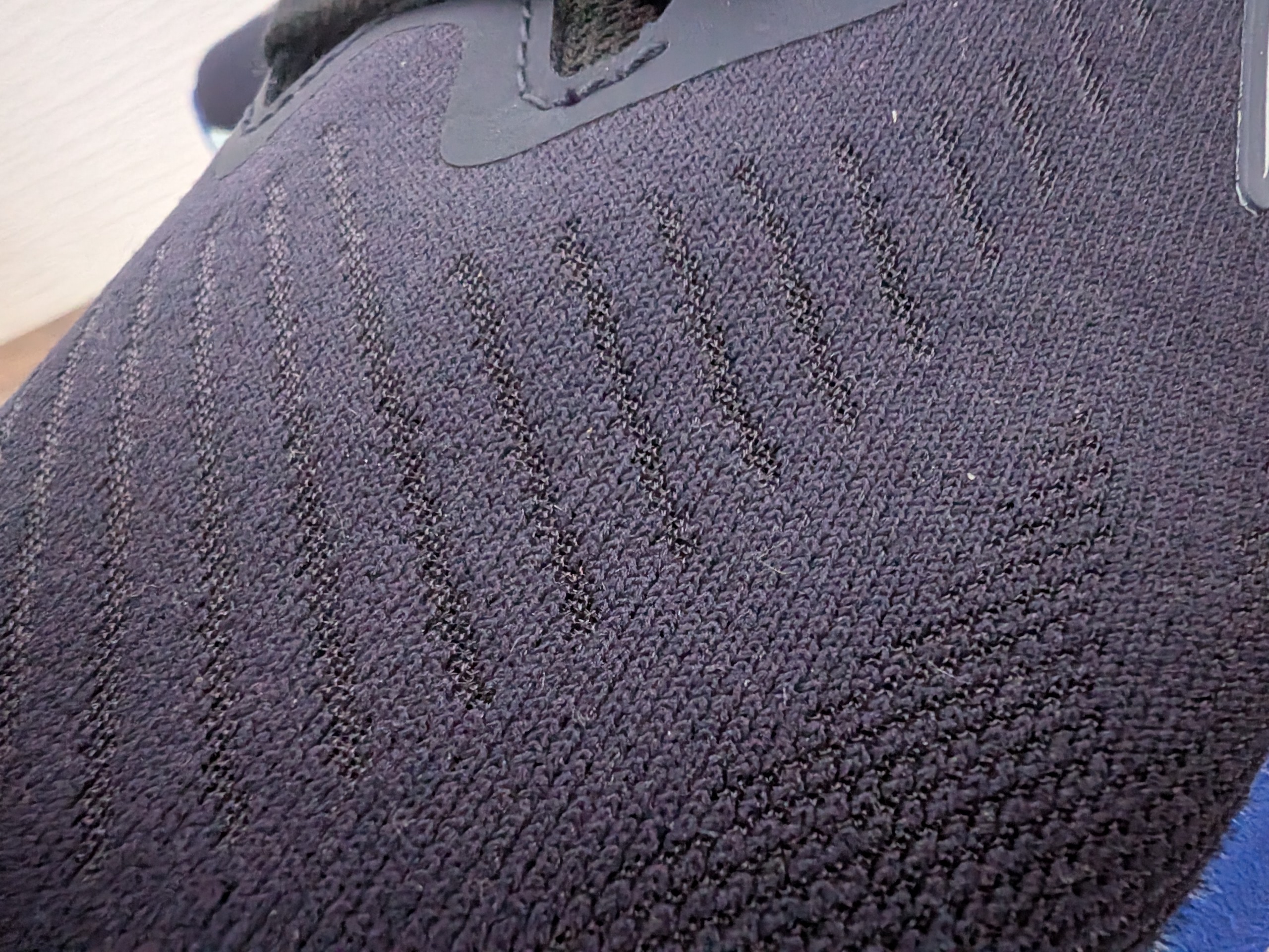 アッパーを拡大してみると通気性が良いとは思えない感じではある。