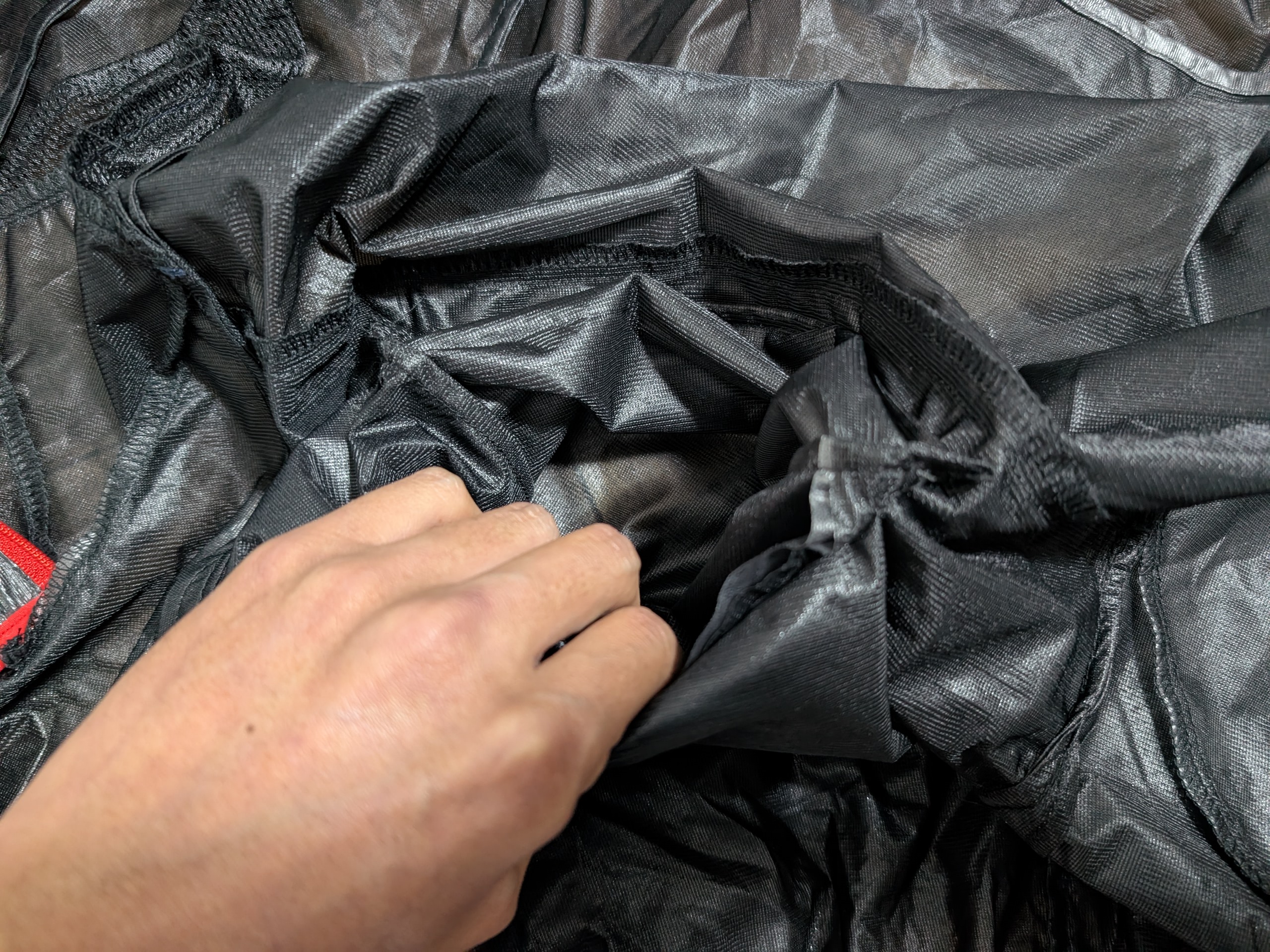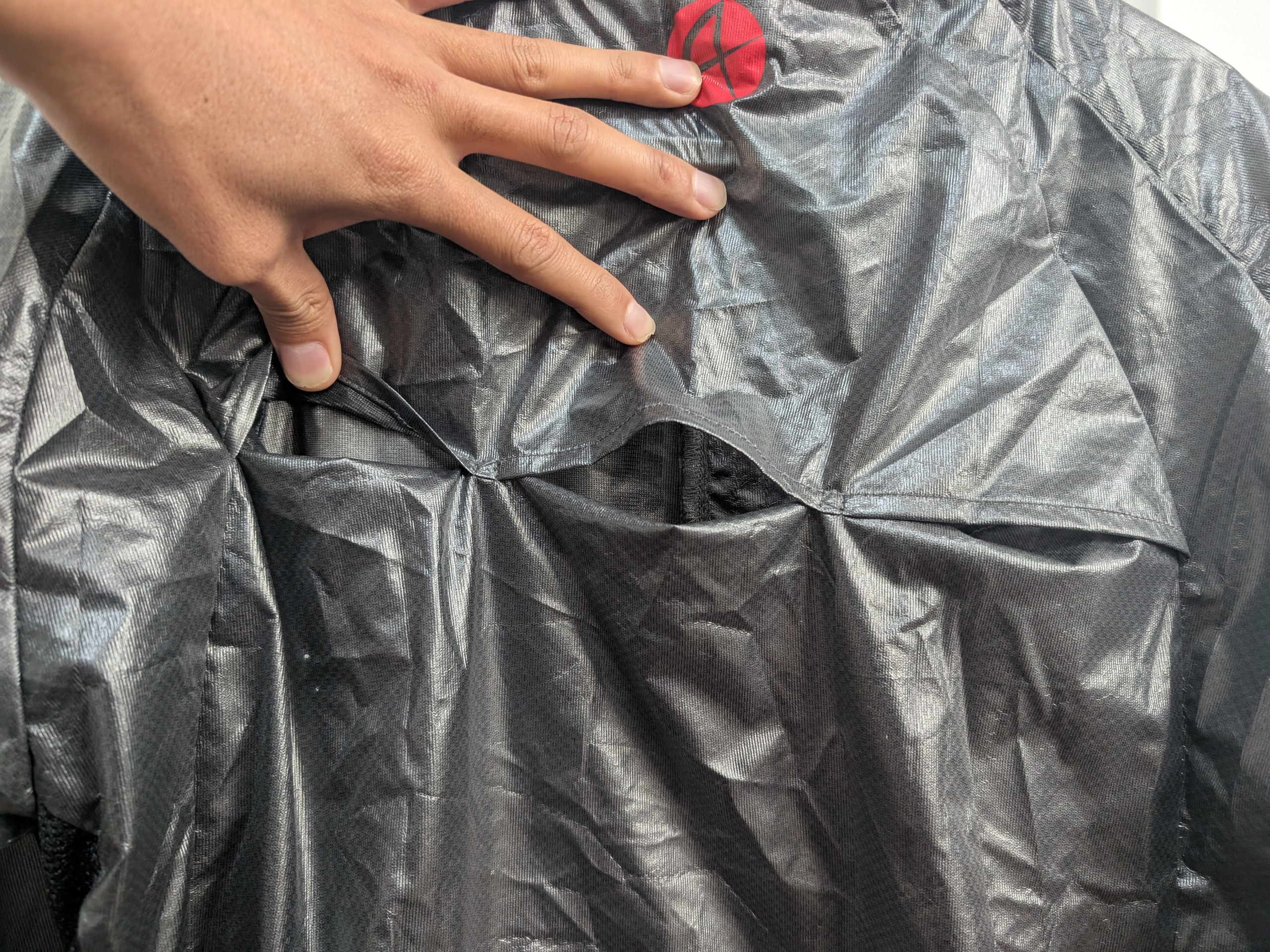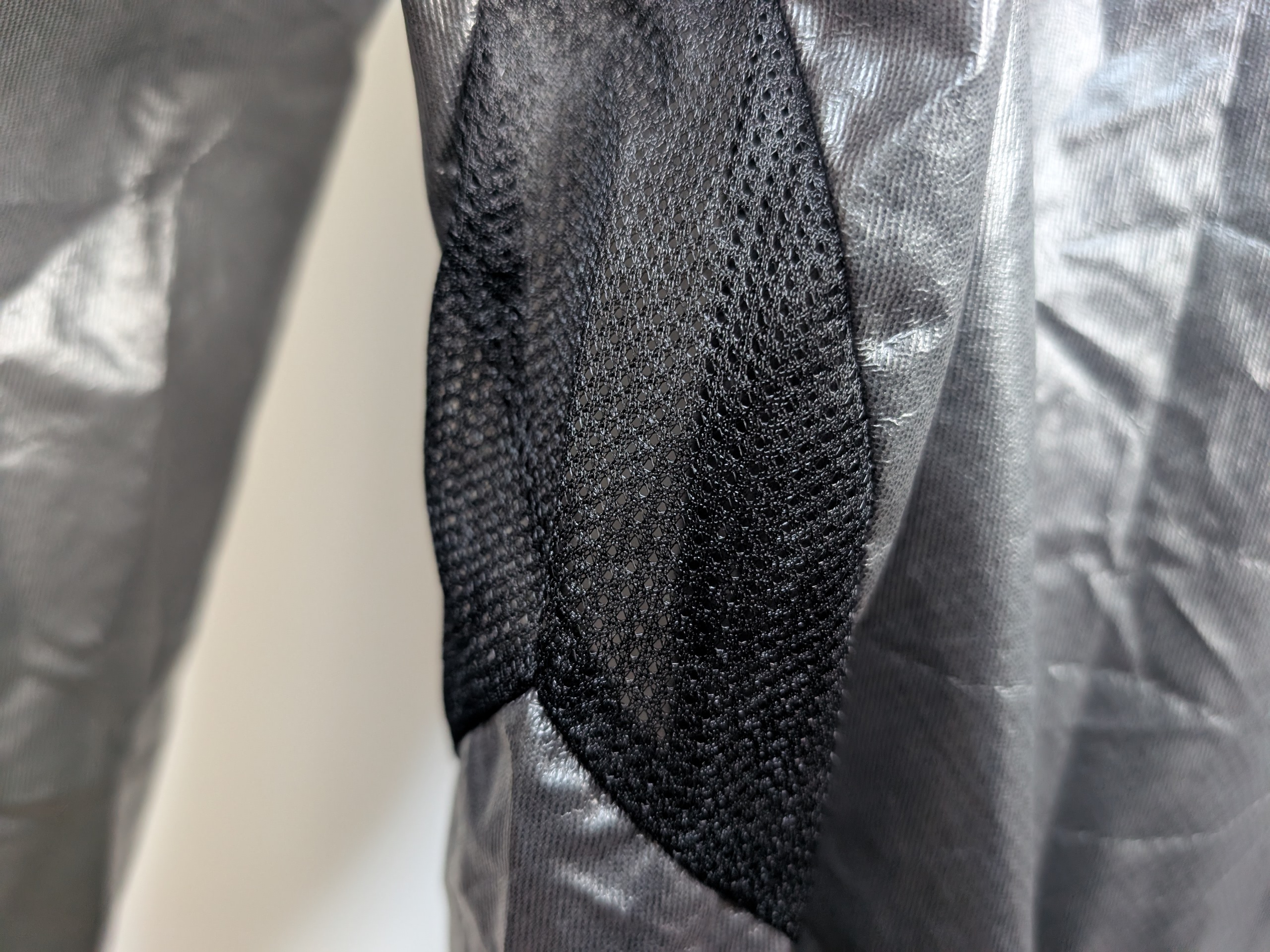 脇の部分のようにメッシュ生地ではないんだけど、熱を外に逃がすという役割は同じ。