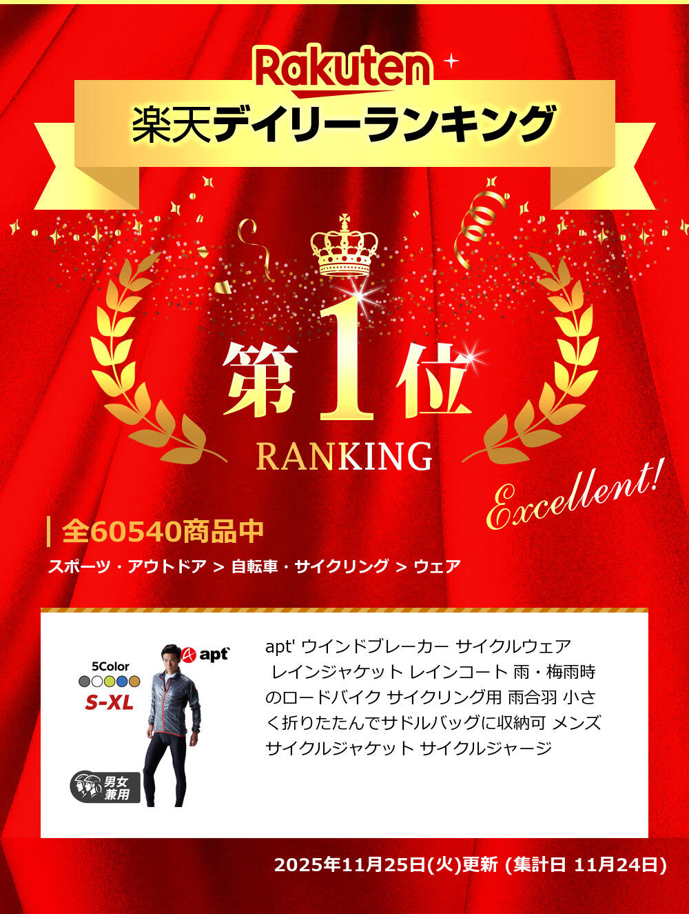 実はこのウインドブレーカー、サイクルパンツ自転車ウェアapt'っていうショップが売ってるもので、ロードバイクの人が着用するためのサイクルジャケットなんだ。