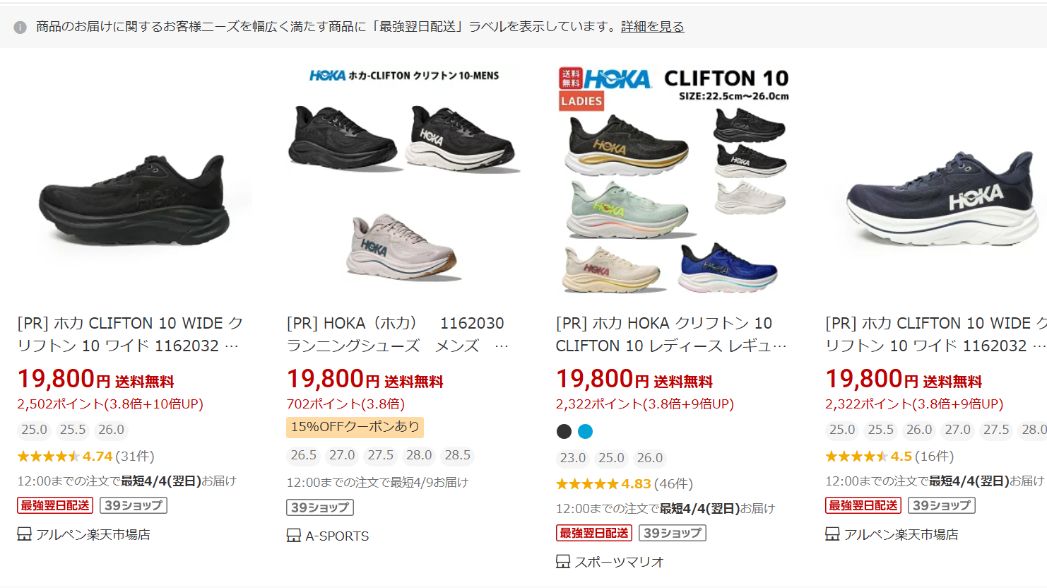 2026年4月3日にクリフトン10の価格をリサーチしたところ、赤字になる勢いで頭おかしい価格設定となることも。