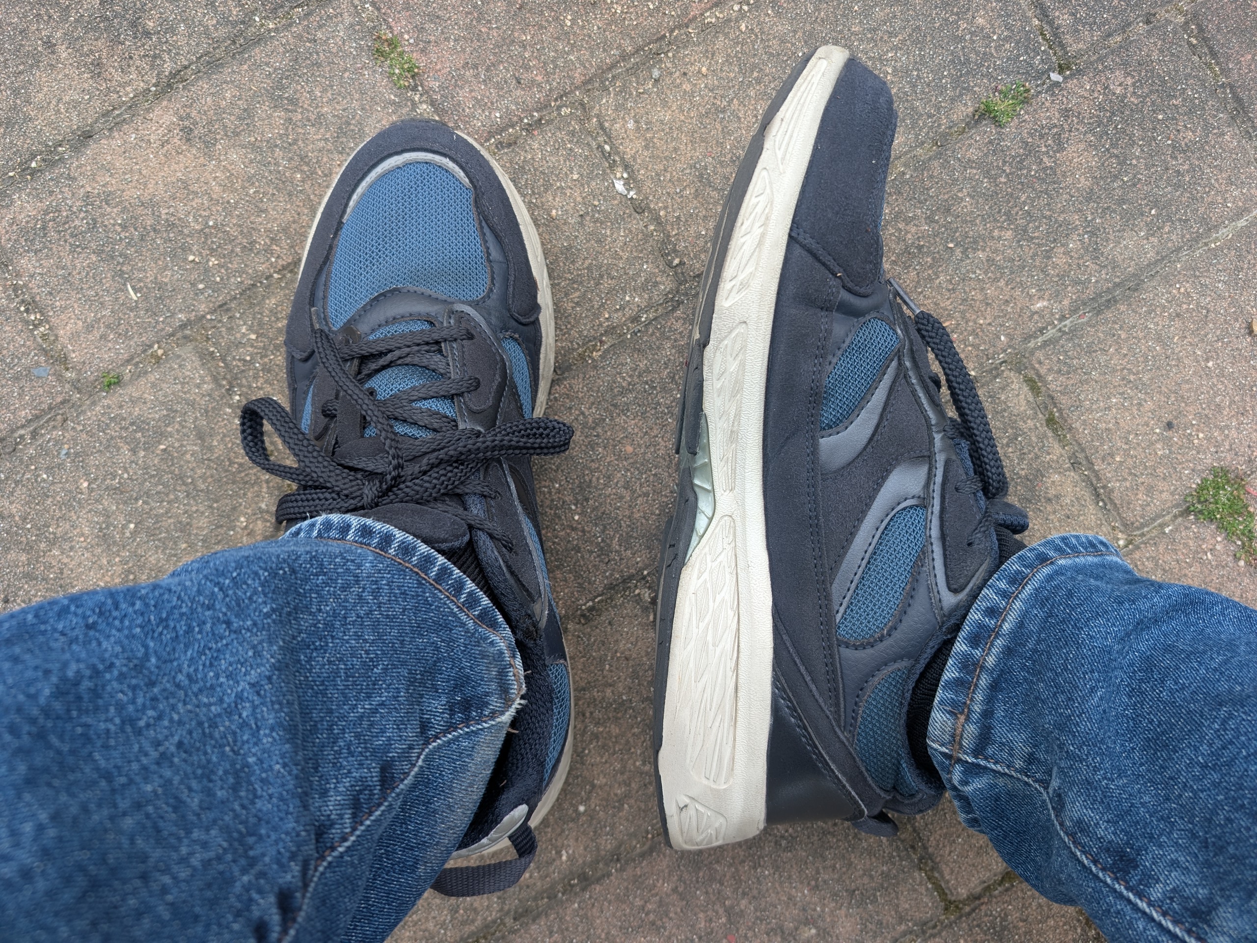 ここ1年で配達の仕事でテキパキ歩くのとウォーキングで兼用し、だいたい1日あたり10km近く履いた状態がこちら。