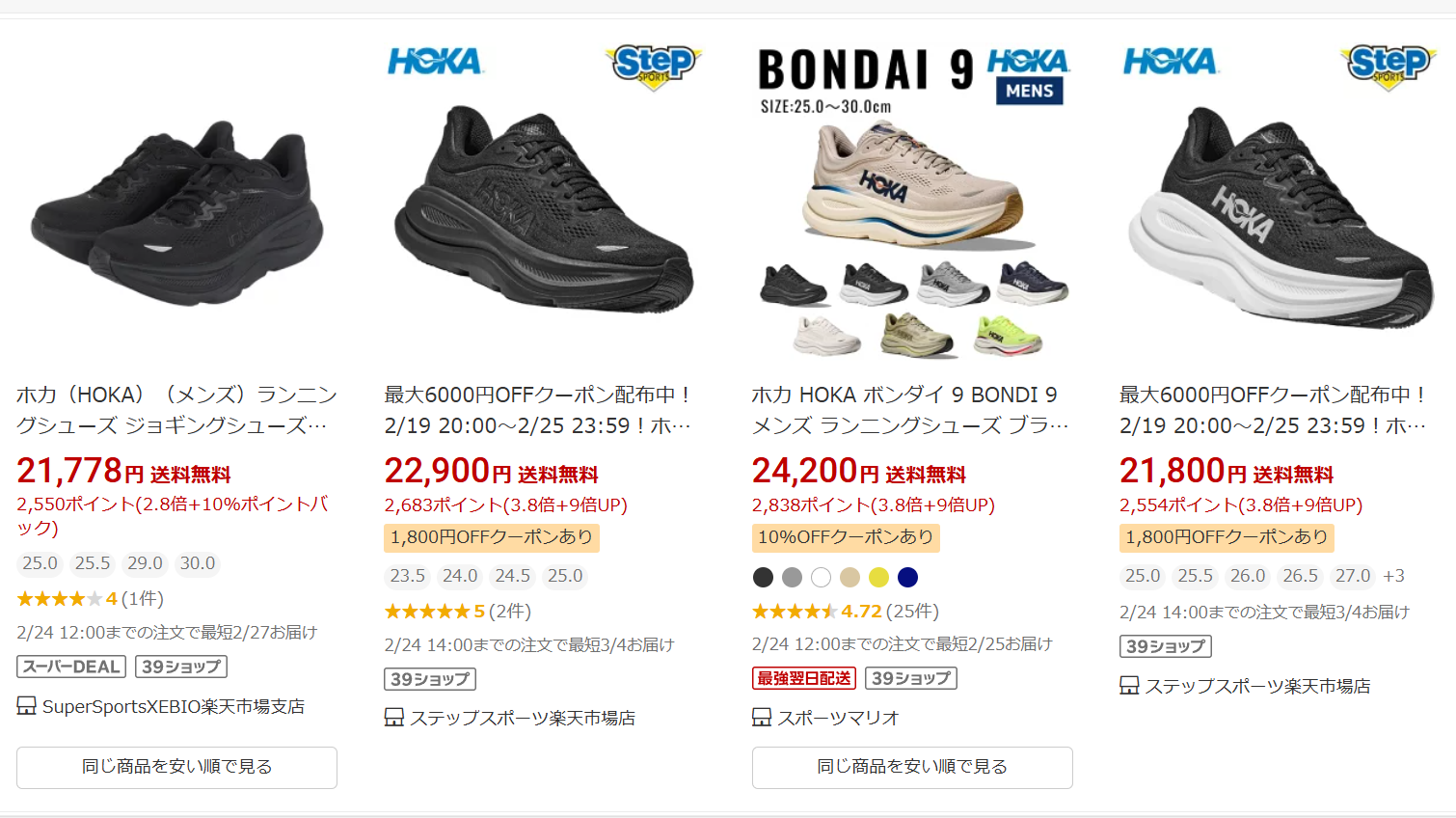 HOKAのシューズを楽天で買うのがおすすめな理由は下記を参照。