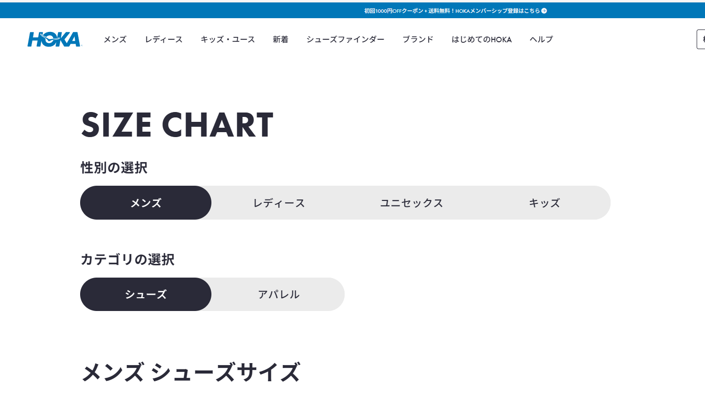【補足】HOKA公式のサイズガイドも参考にしてみよう!