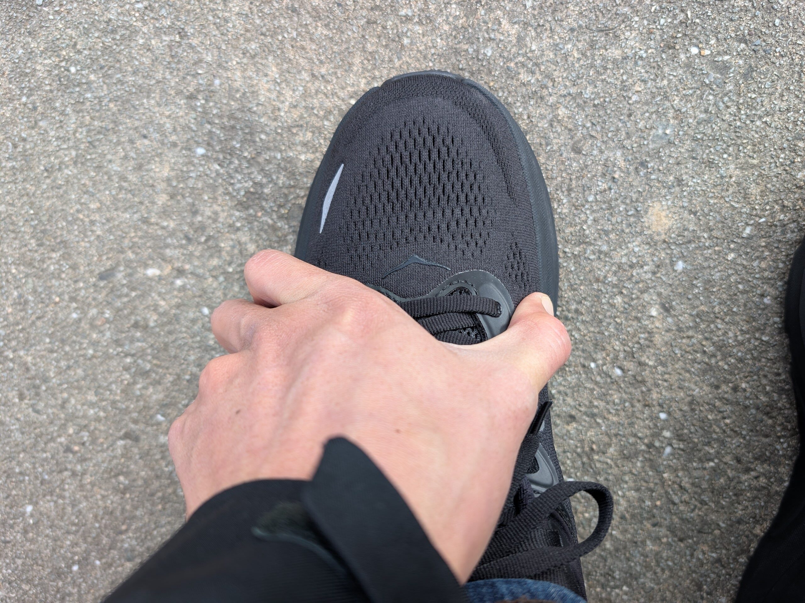 ボンダイ9はつま先部分までまんべんなくクッションが厚い作りなのでソールとアッパーにつま先の上下がサンドイッチ状態だ。