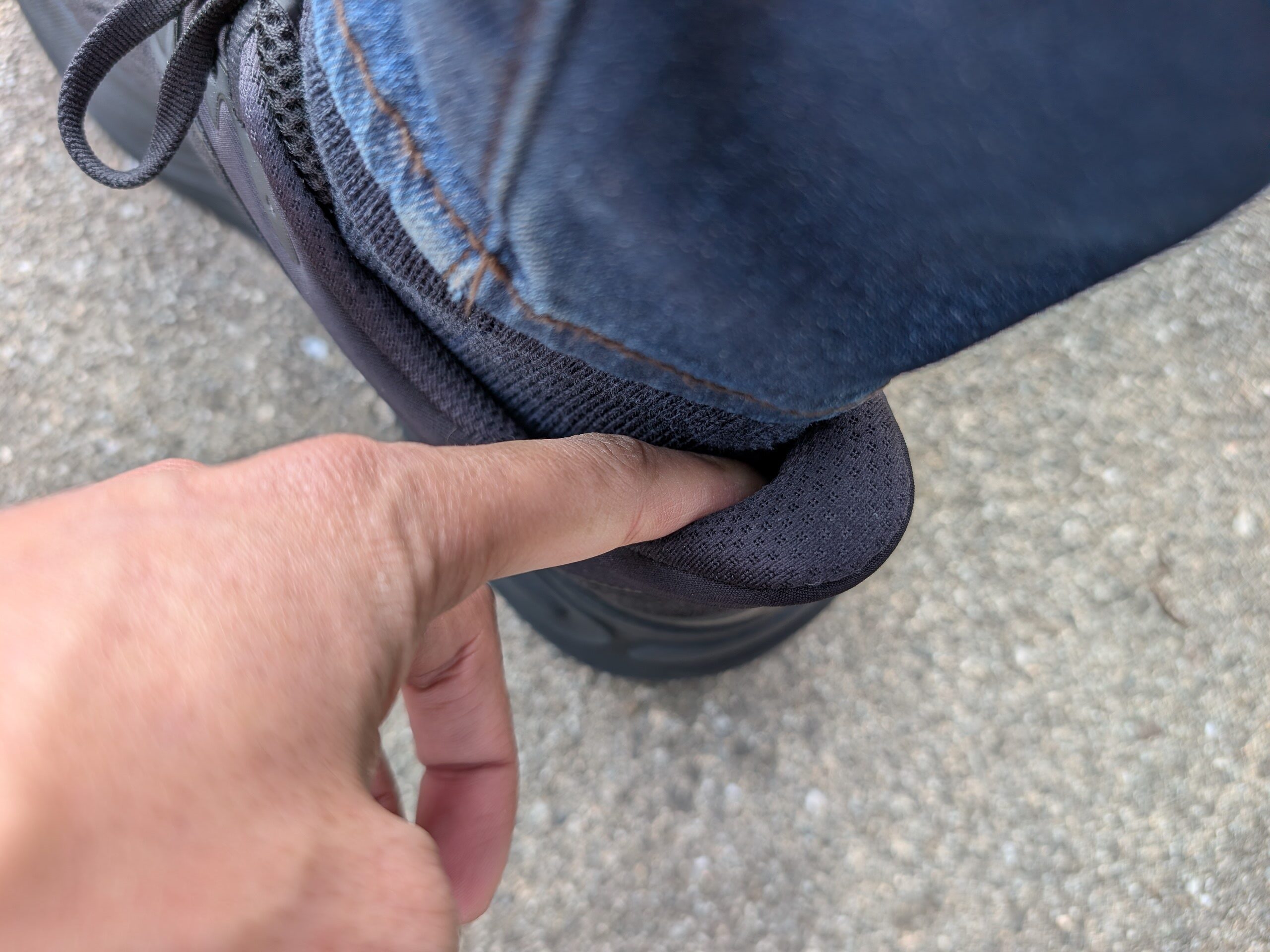 つま先と踵に余裕があるとはいえ膝に負担をかけない疲れさせないボンダイの機能が死んでいない履き方だと言える。