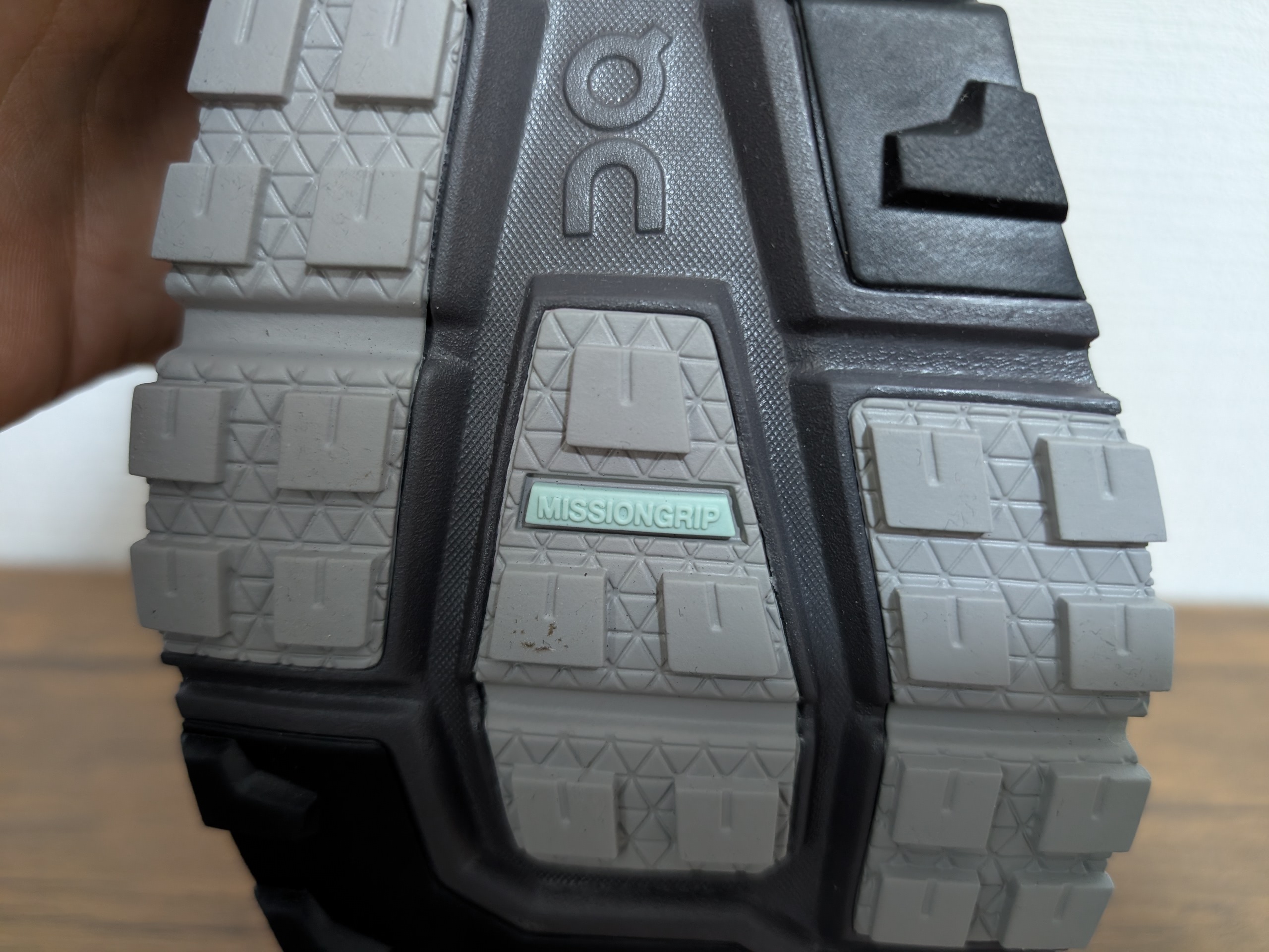 これはMissiongrip Rubber(ミッショングリップラバー)っていうグリップ性の高いアウトソールを採用しているらしい。