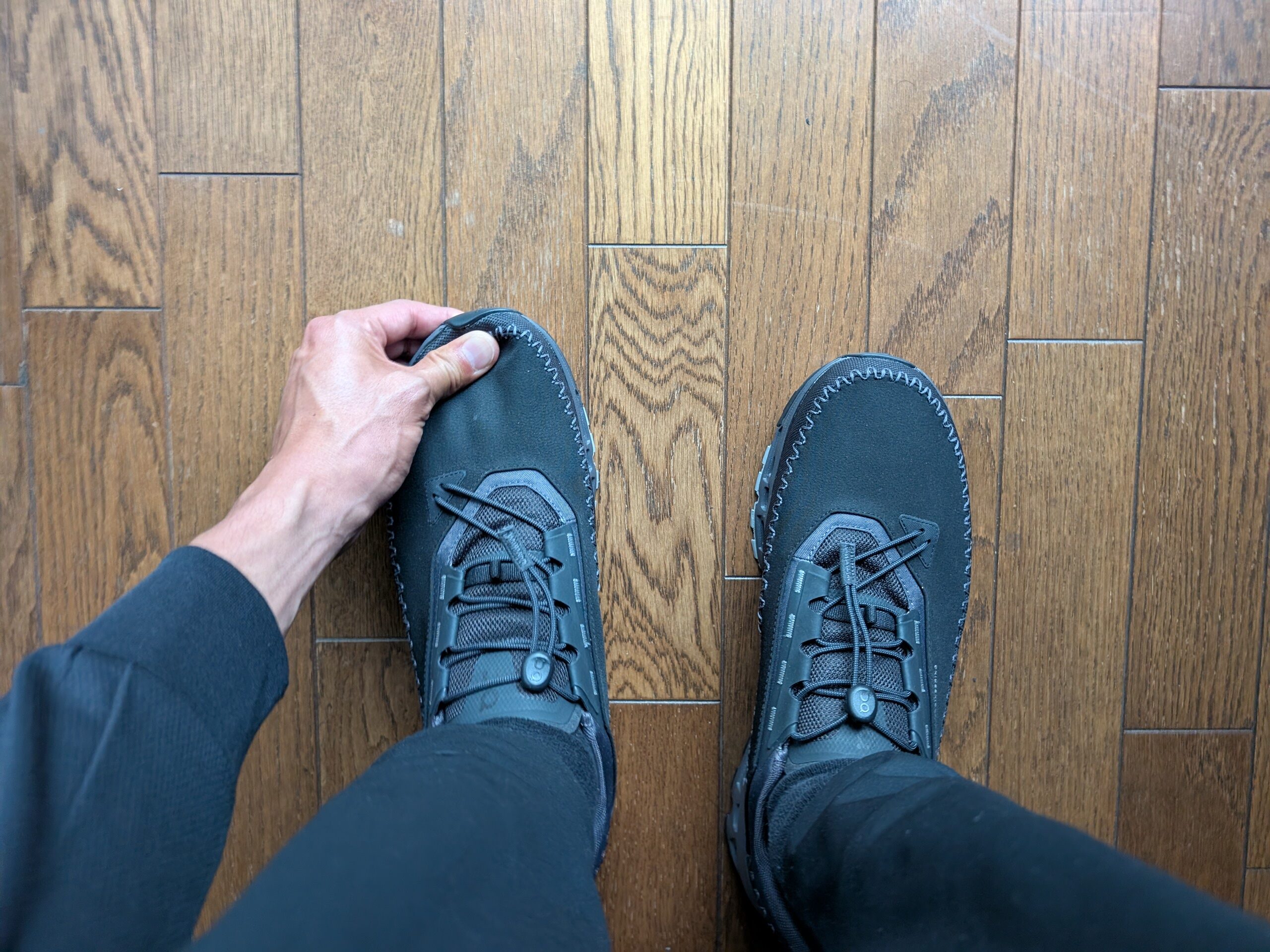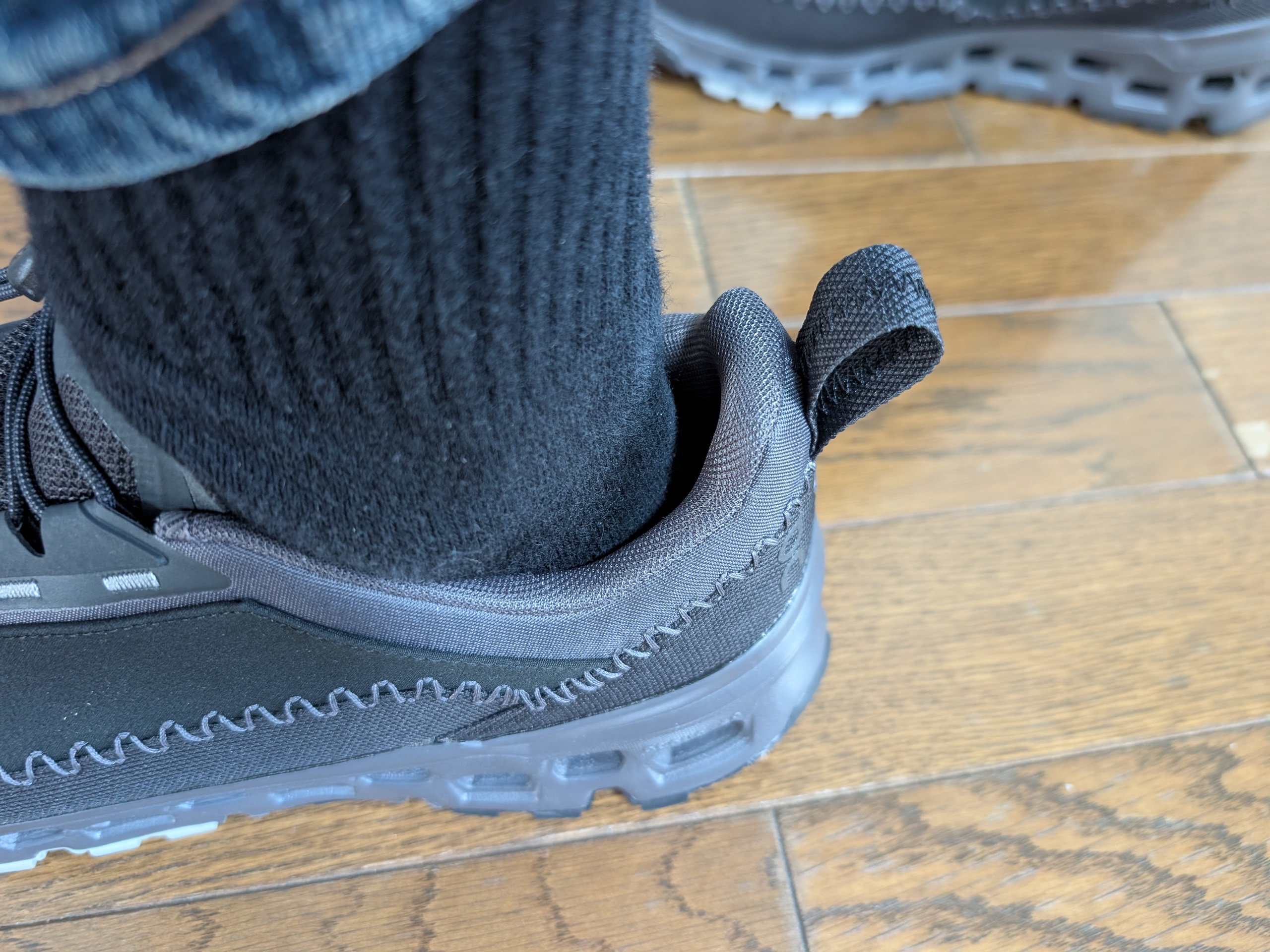 クラウドアウェイ2は旧モデルと比べてトグルで調節できる長さ増しているため、シューズの脱ぎ履きも若干楽になった印象だ。