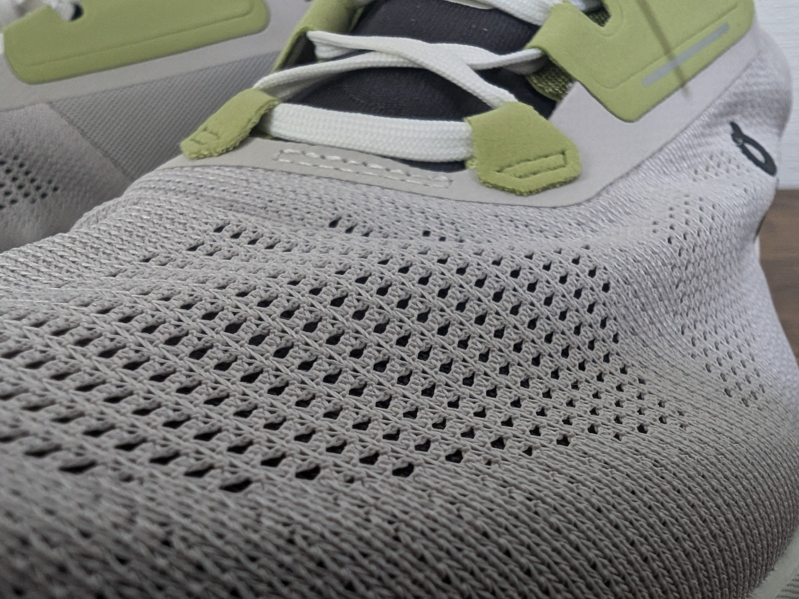 天然素材100%のメッシュ生地がつま先からシューズの外側にかけて広がっているので、これまで僕がレビューしてきたOnシューズの中でも通気性は断トツ。