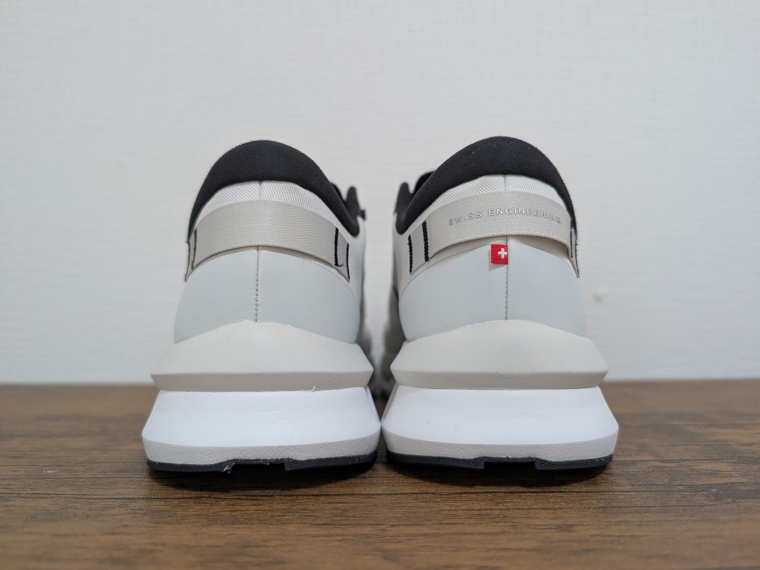 かかとのベルトに印字された文字はスイス・エンジニア(SWISS ENGINEERING)と読むらしい。