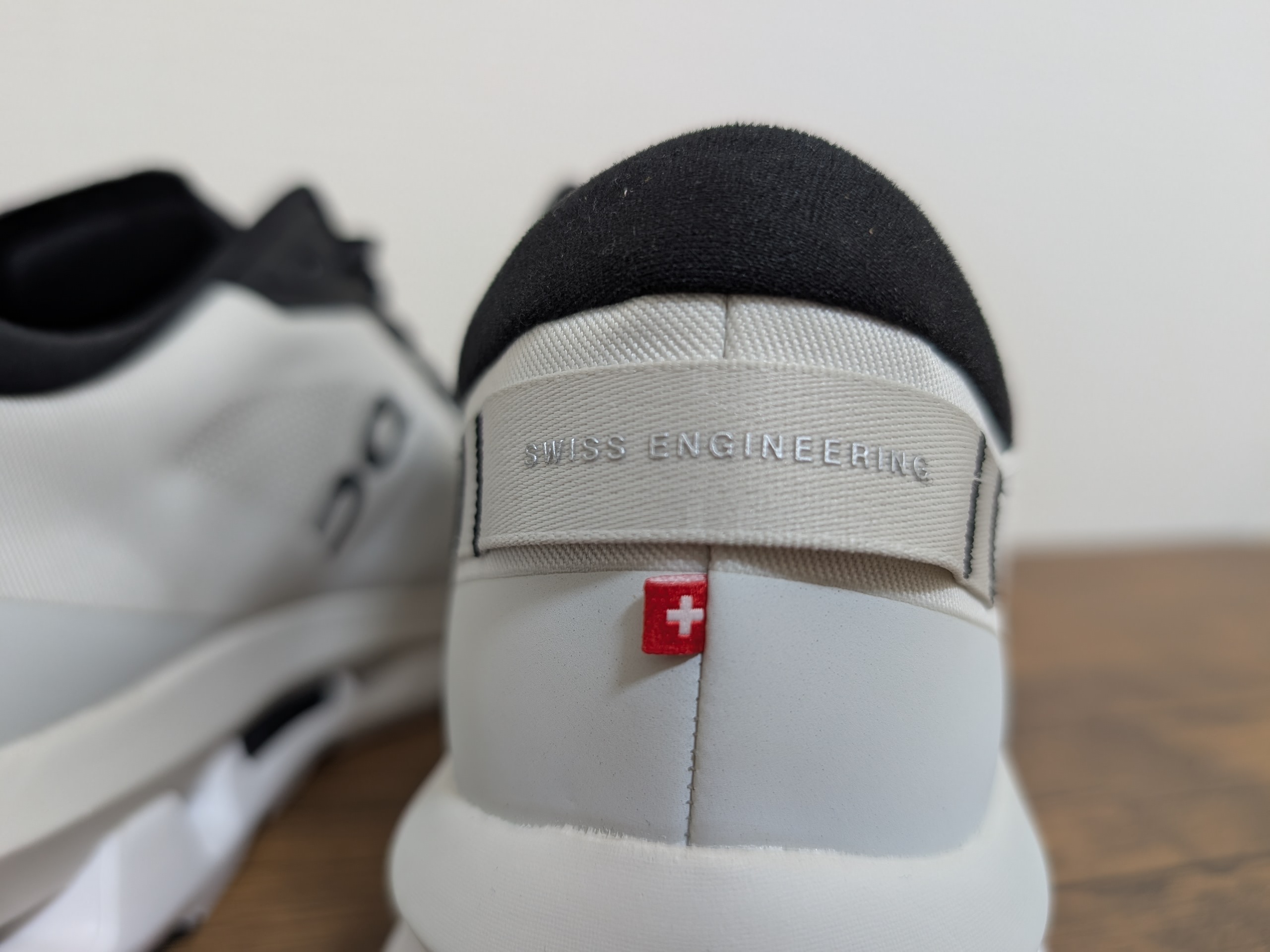 Onのシューズでもお馴染みのスイスの国旗は右足の後ろに刺繍されている。