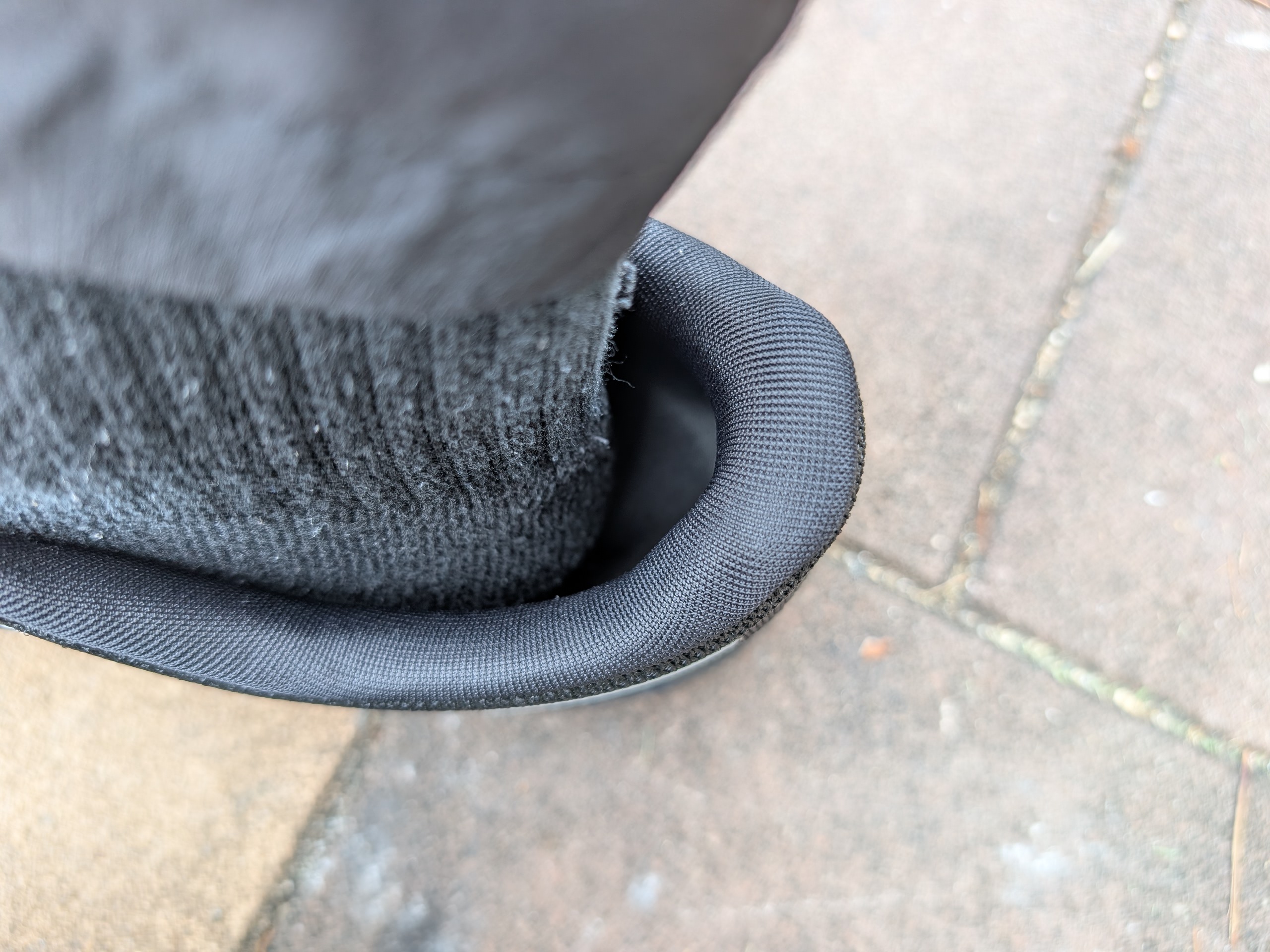 くるぶしの下の辺りは踵を保護するために分厚くなっているが、メッシュのおかげで安定性と通気性のバランスも良い。