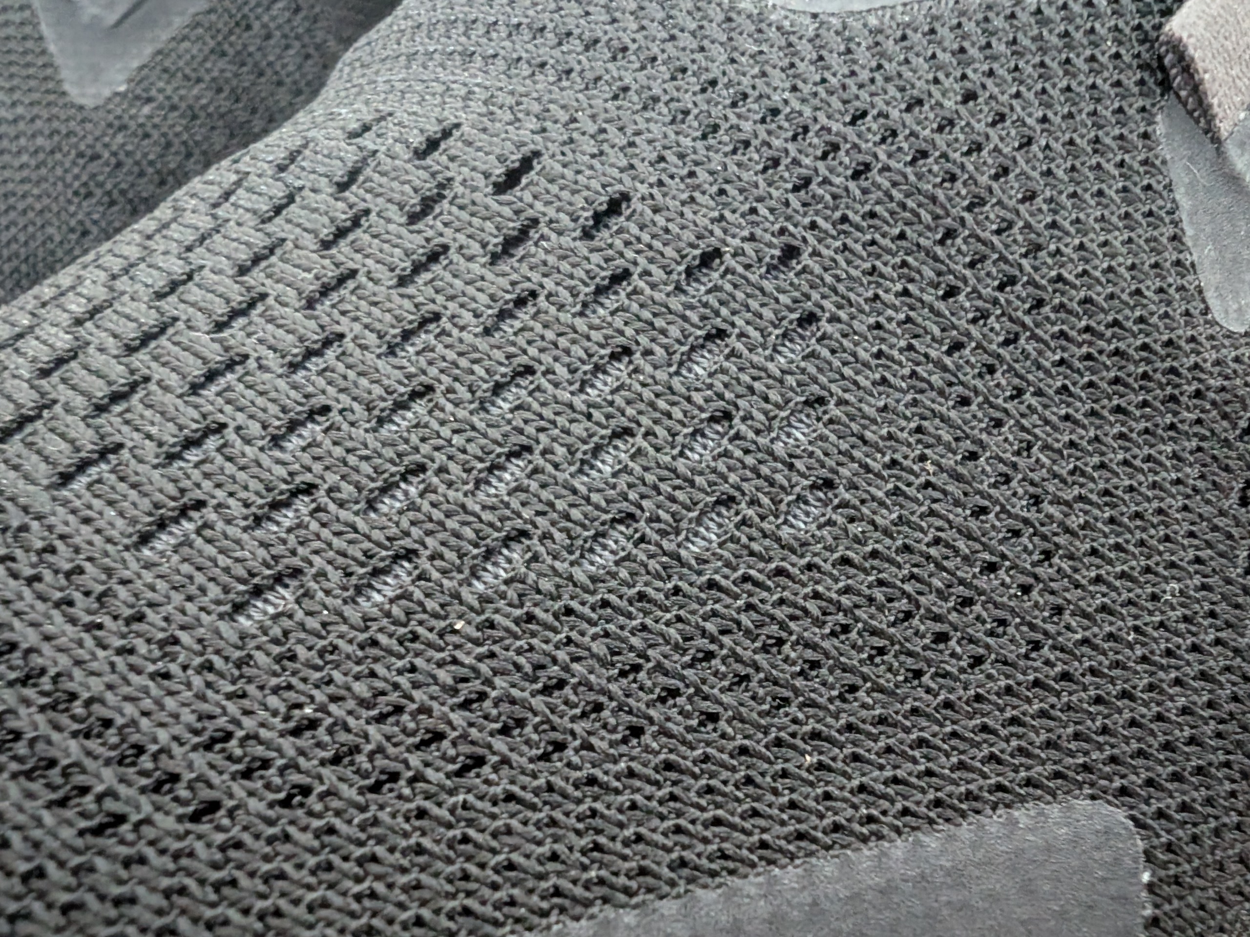 通気性の良さはアッパーのメッシュ穴が大きいだけでなく生地全体が超薄かった。