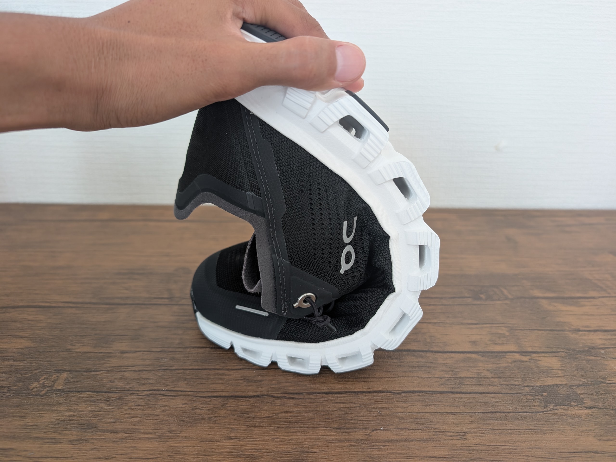 踏んでも反発して元に戻る踵はフニャッとしたアッパーより丈夫なので、多少雑に折りたたんでもシューズは壊れにくい印象だ。
