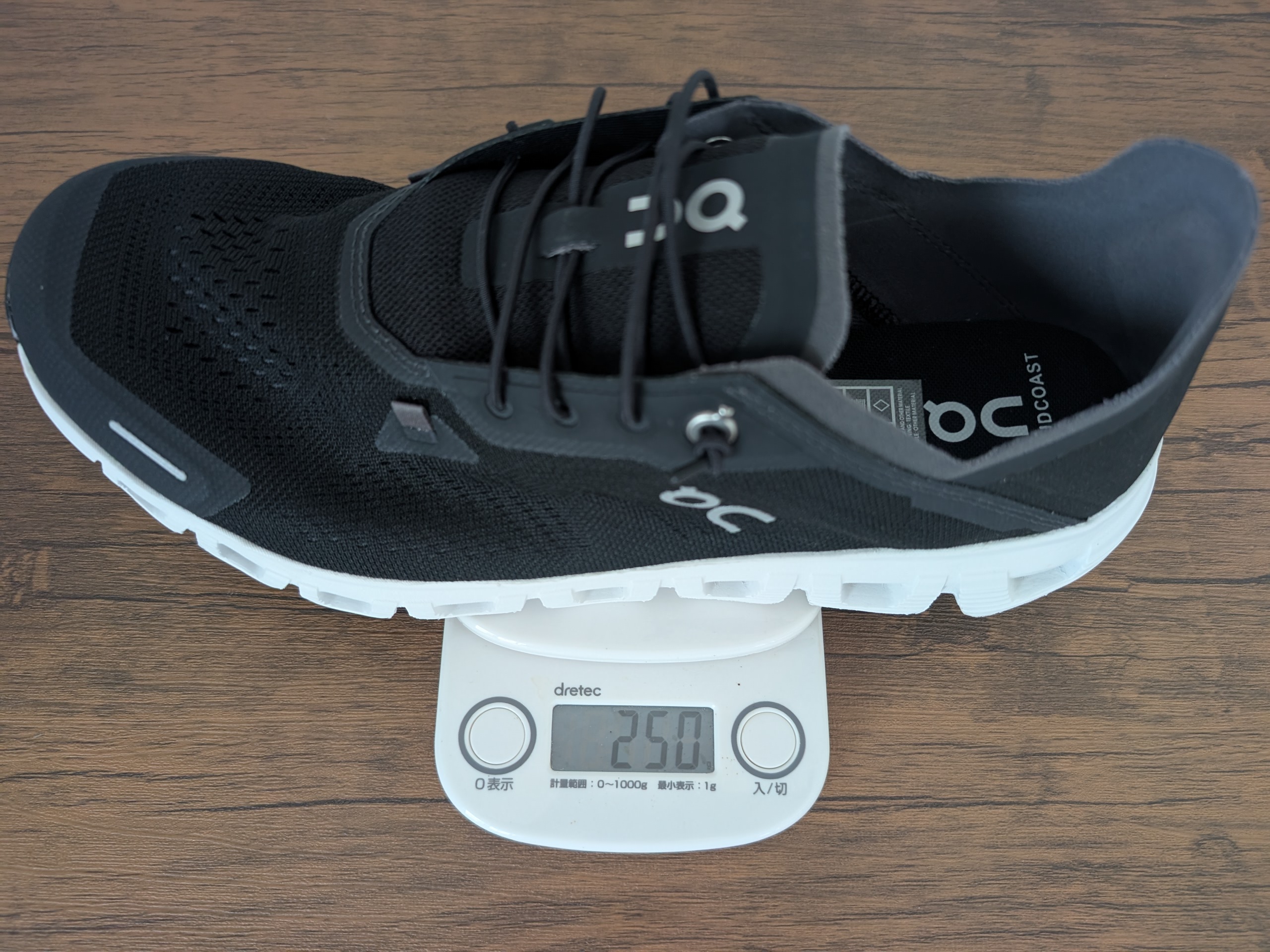 クラウド6コーストの重さはメンズサイズ28.5cmで250gだった。