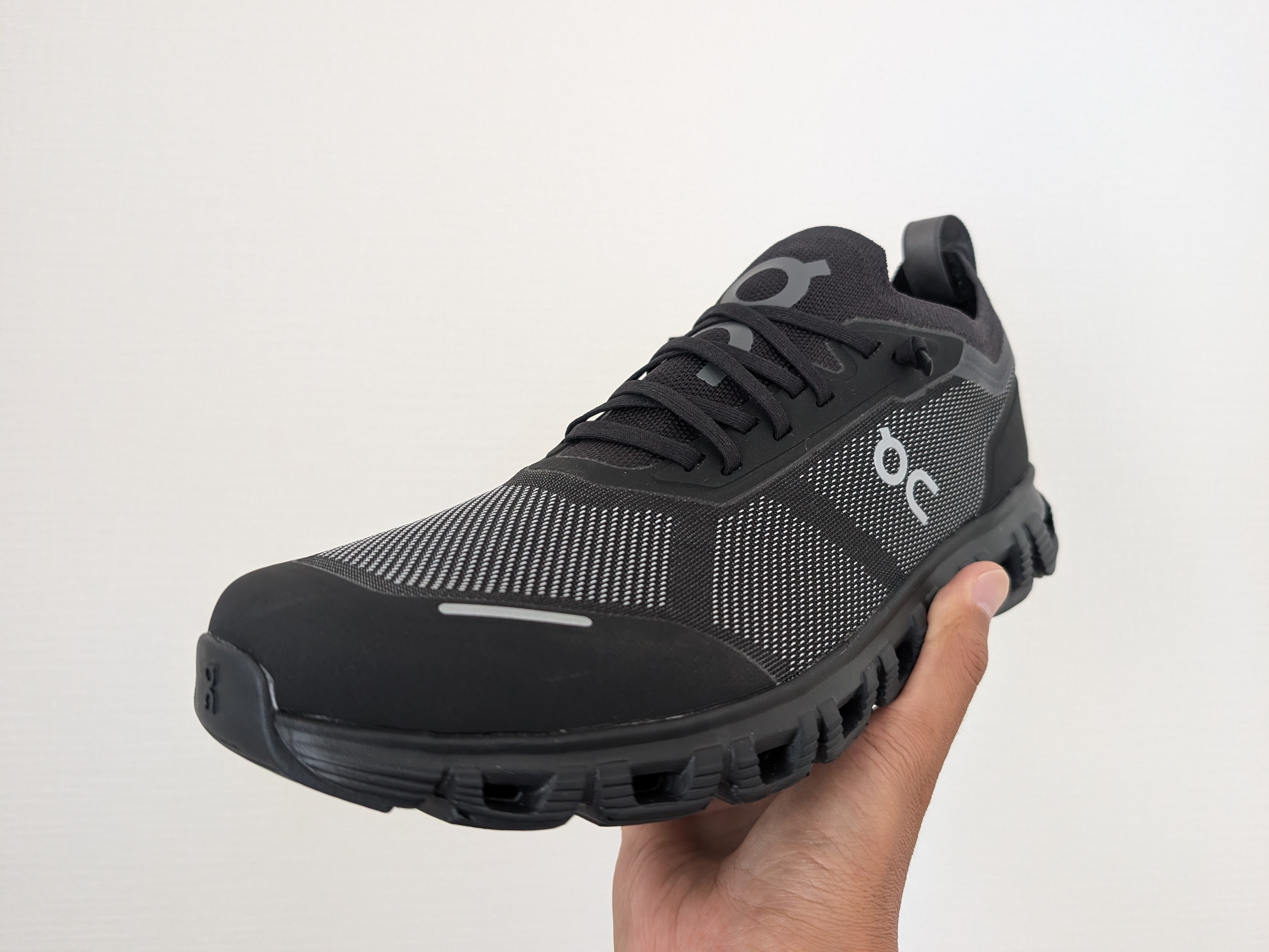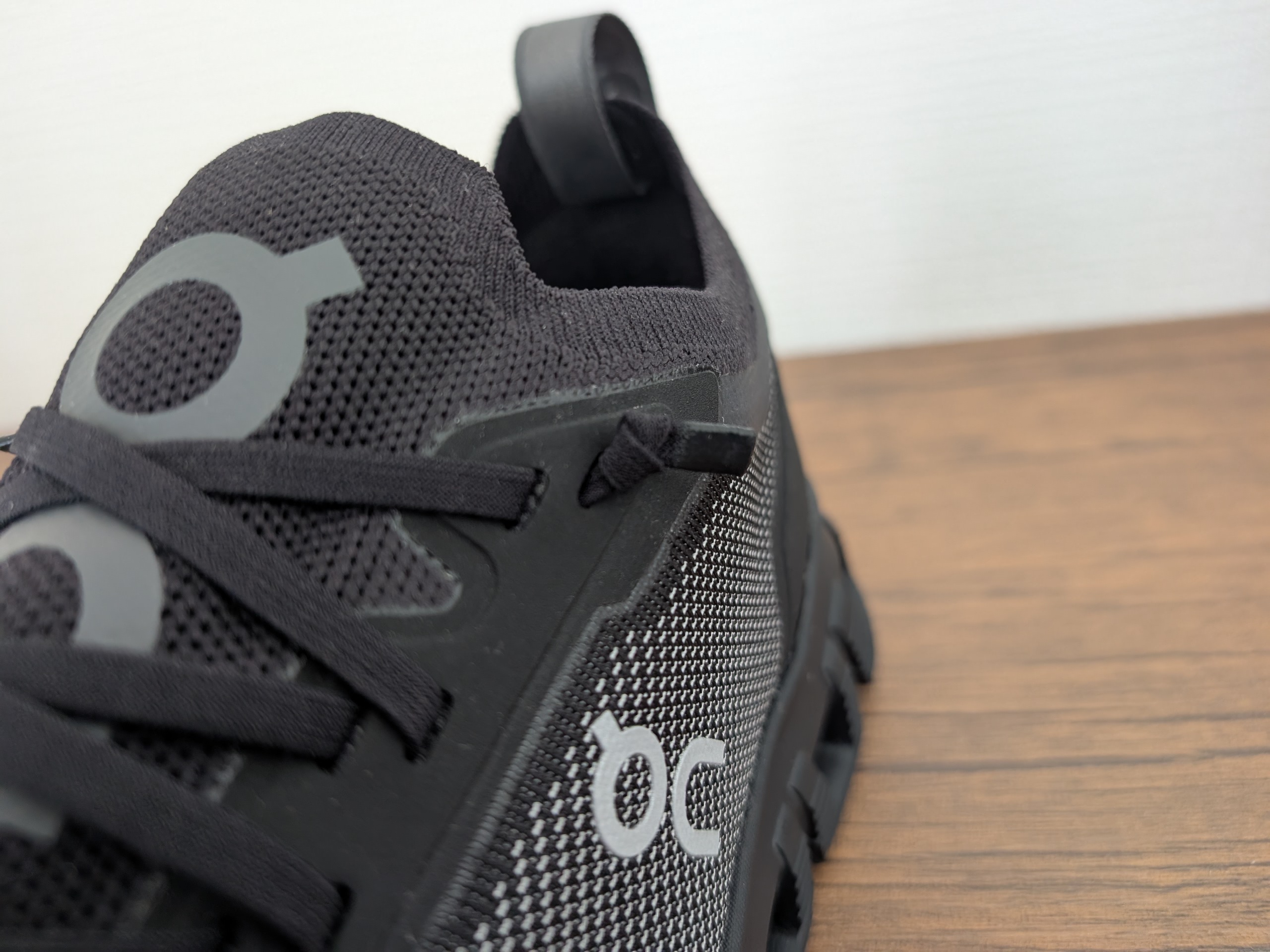 Onのロゴとつま先の反射板だけでなくヴァーサの外観は全体的に光を反射しやすい印象。