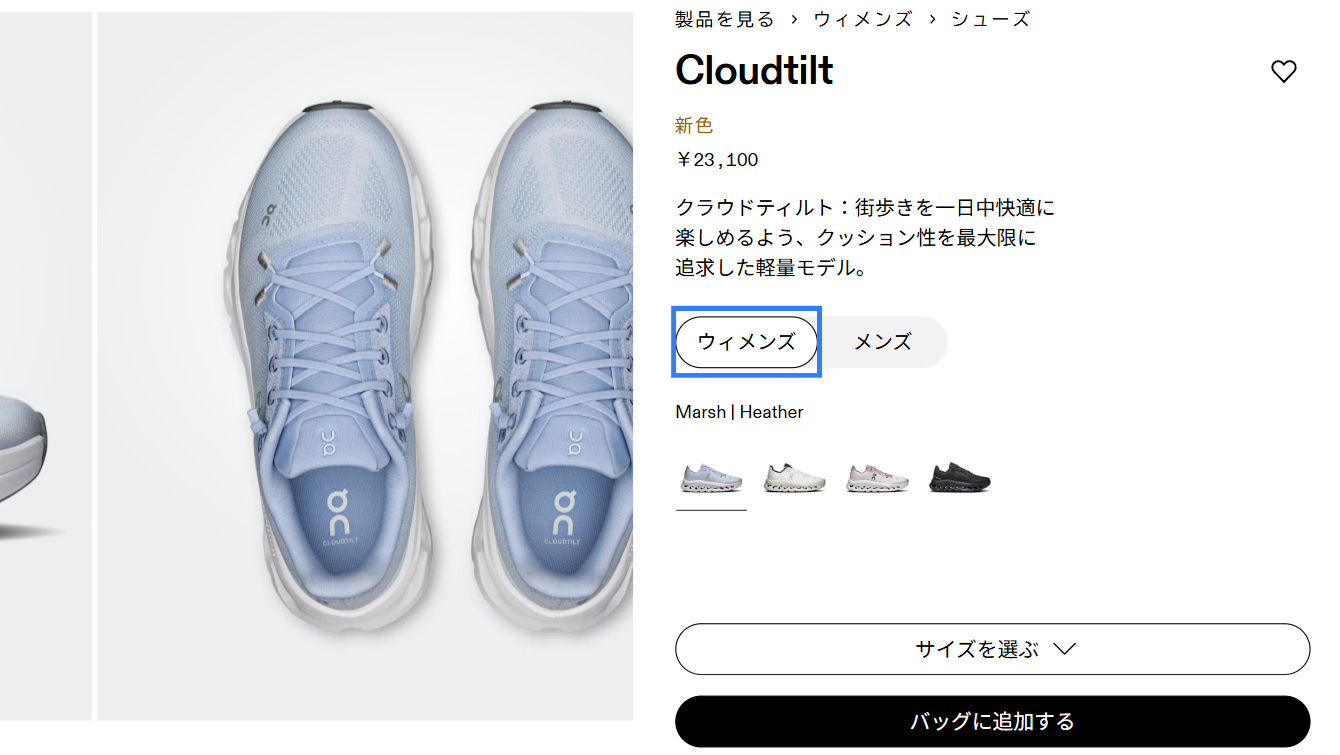 クラウドティルトの在庫がどうしても見つからない場合は、On公式オンラインストアで買うのも大変おすすめだ。